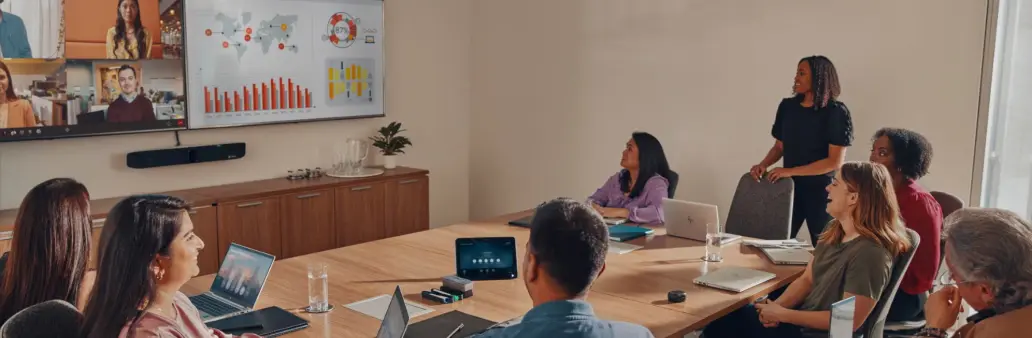 Hybrid work opens new possibilities for you and your organization. Evolve company culture, secure and retain the best talent, foster greater employee satisfaction, and transform customer interactions. Everyone can participate thanks to inclusive technology such as people-focused video and distraction-free audio.